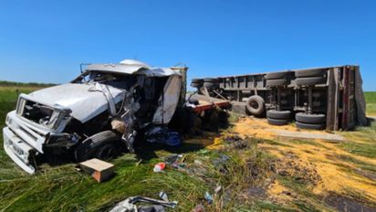 25-02-2026 Sucesos Un choque de camiones obligó a cortar la ruta 34 por varias horas Fue a la altura de la localidad de Casas. Uno de los vehículos desparramó la carga en la cinta asfáltica.
