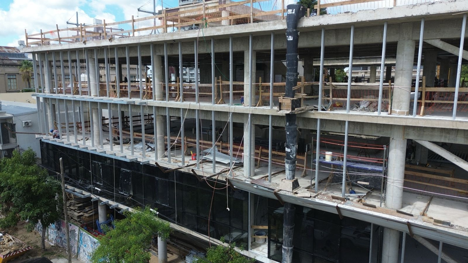El Gobierno de Santa Fe continúa con la construcción del nuevo Instituto Superior N° 8 “Almirante Brown” de la ciudad de Santa Fe, y ya comenzó a colocar la piel de vidrio en todo el perímetro del edificio que levanta en la esquina de Güemes y Castellanos.