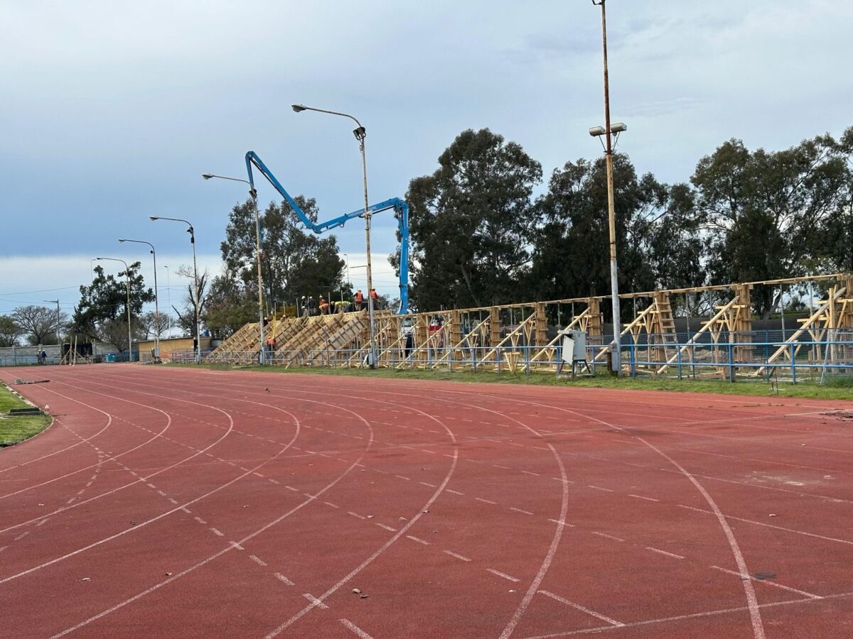 28-09-2025 Deportes Avanzan las obras para los Juegos Suramericanos 2026 En Santa Fe, la pista del CARD comienza a mostrar sus tribunas, mientras que en Rosario montan la estructura del estadio multipropósito.