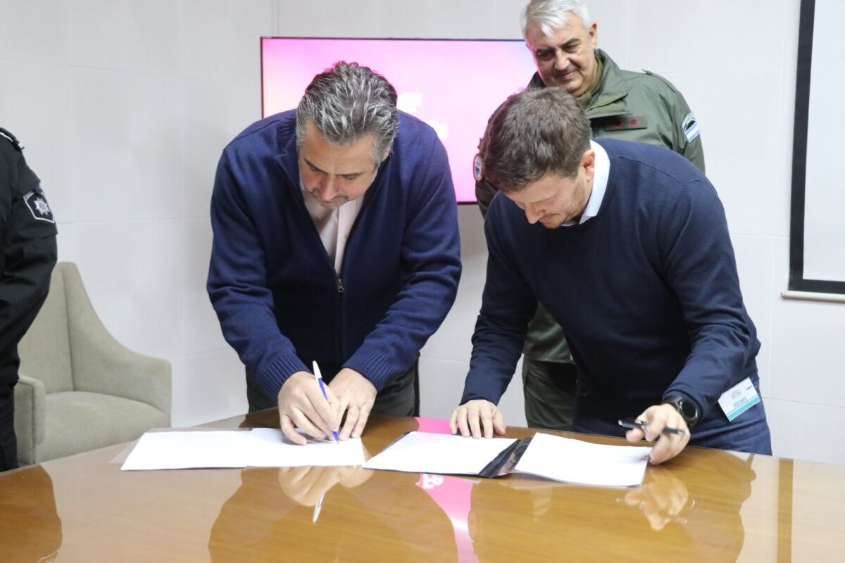 El ministro de Justicia y Seguridad de Santa Fe, Pablo Cococcioni, y el subsecretario de Intervención Federal, Federico Angelini, firmaron el convenio. Buscan coordinar las acciones de las fuerzas provinciales y federales en patrullajes y operativos.