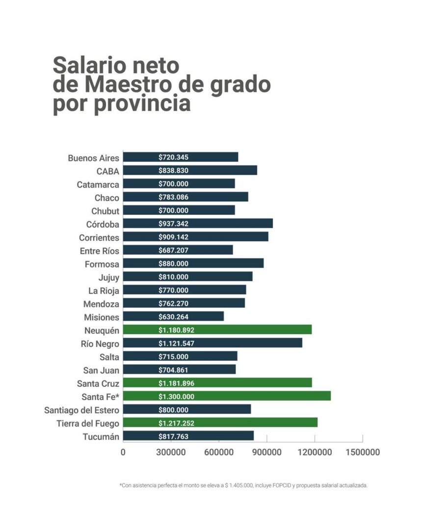 Tras el rechazo de la propuesta paritaria hecha a los gremios docentes, el gobierno de Santa Fe insiste que con el ofrecimiento hecho, el salario inicial de un maestro de grado pasará a ser de los mejores del país, en comparación con otras provincias.