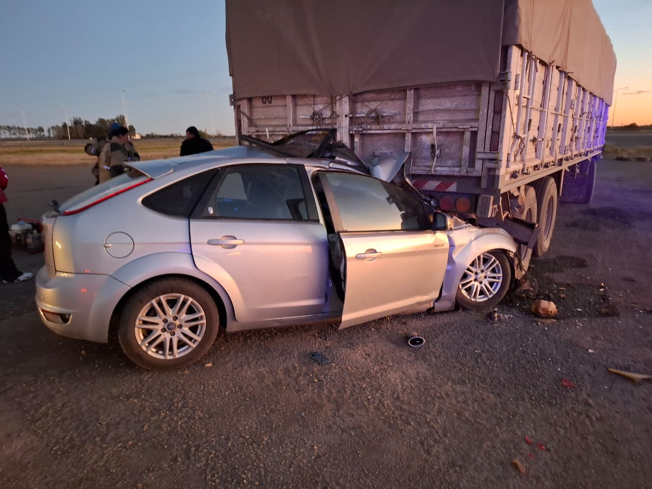 Por causas que se investigan, el conducto de un Ford Focus que circulaba por la ruta 10, perdió el control del vehículo al incorporarse a la autovía 19. Como consecuencia de eso, pasó por encima del guardarrail e impactó contra el acoplado de un camión que estaba estacionado en la zona de descanso.