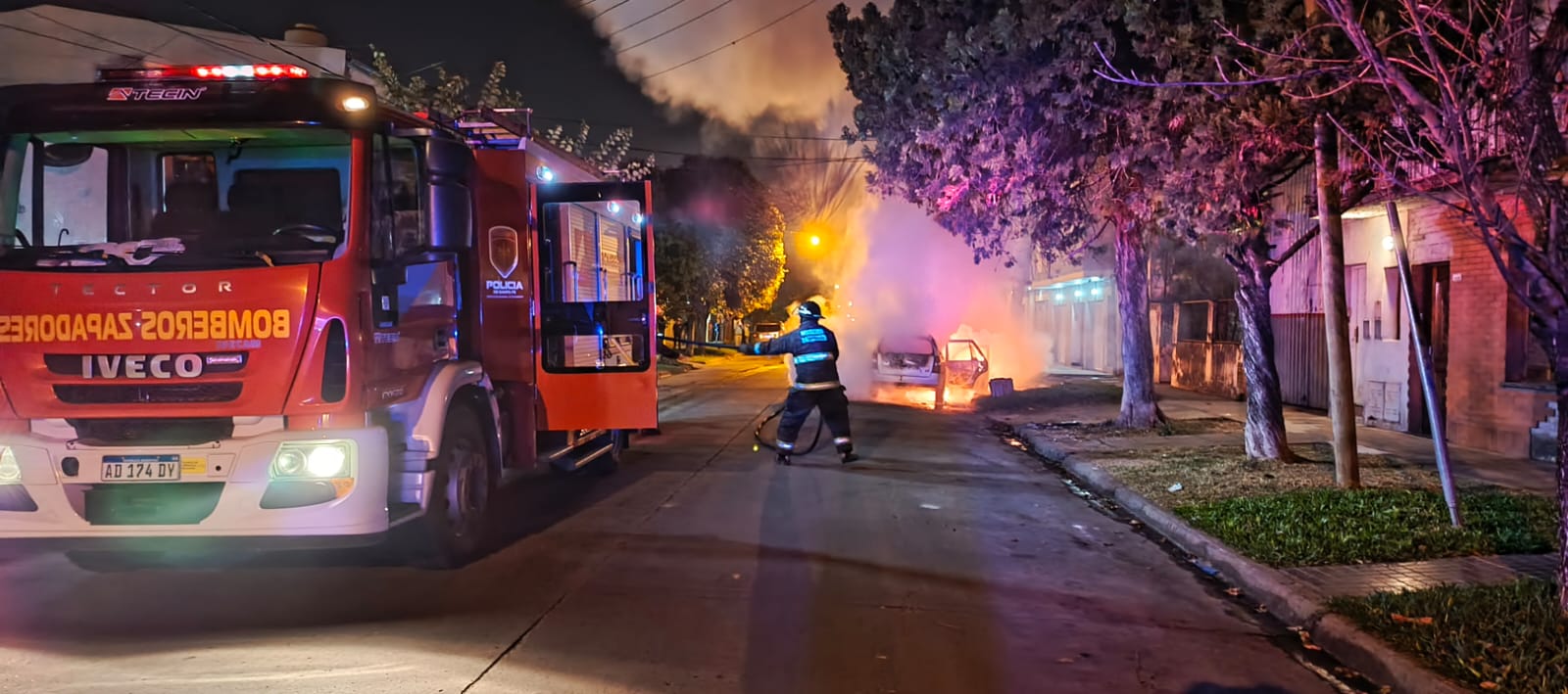 El primer hecho ocurrió alrededor de las 21.20 en inmediaciones de Santiago del Estero y San Luis. Allí, se prendió fuego un vehículo marca Peugeot color rojo. El siniestro generó daños totales en la parte trasera del auto.