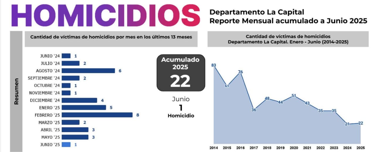 - La Capital: 22 homicidios