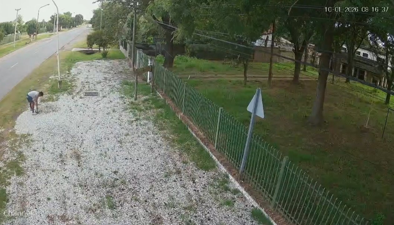 Mario Pereyra sufrió un insólito hecho de inseguridad en su casa de Sauce Viejo, que quedó registrado por las cámaras de seguridad instaladas en su domicilio. En las imágenes se observa cómo un automóvil se detiene frente a la vivienda, de donde desciende un hombre que comienza a juntar con una pala las piedras decorativas de la vereda. El ladrón llena tres baldes y se va.