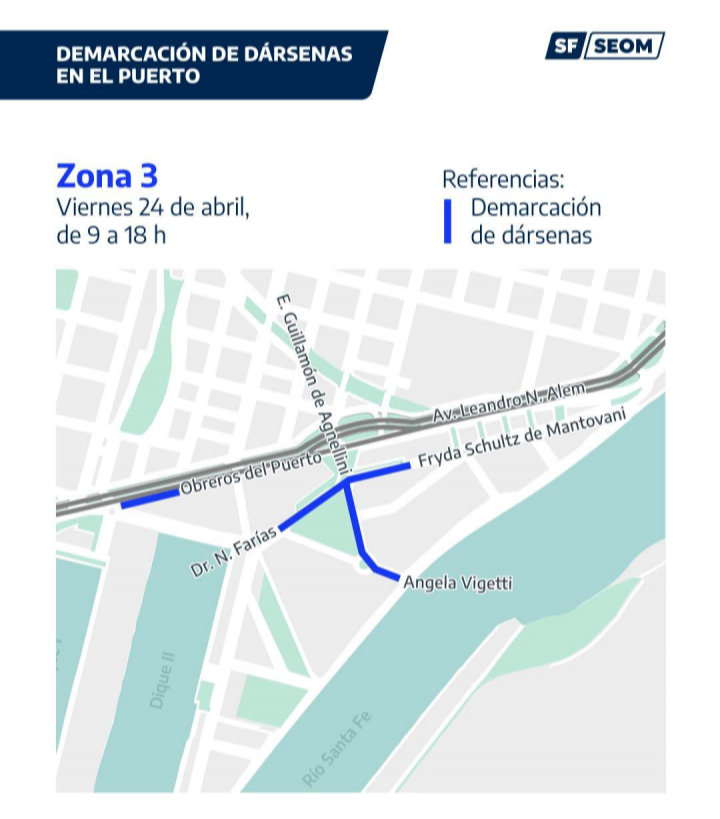 Desde este miércoles y hasta el viernes inclusive, la Municipalidad de Santa Fe comenzará con los trabajos de demarcación de 460 dársenas en el sector del Puerto, a pedido del Ente portuario, para ordenar una zona que se encuentra en constante crecimiento y desarrollo urbano. Las tareas buscan modernizar el sistema de estacionamiento, optimizar la circulación y promover un uso más eficiente del espacio público en sectores de alta demanda.