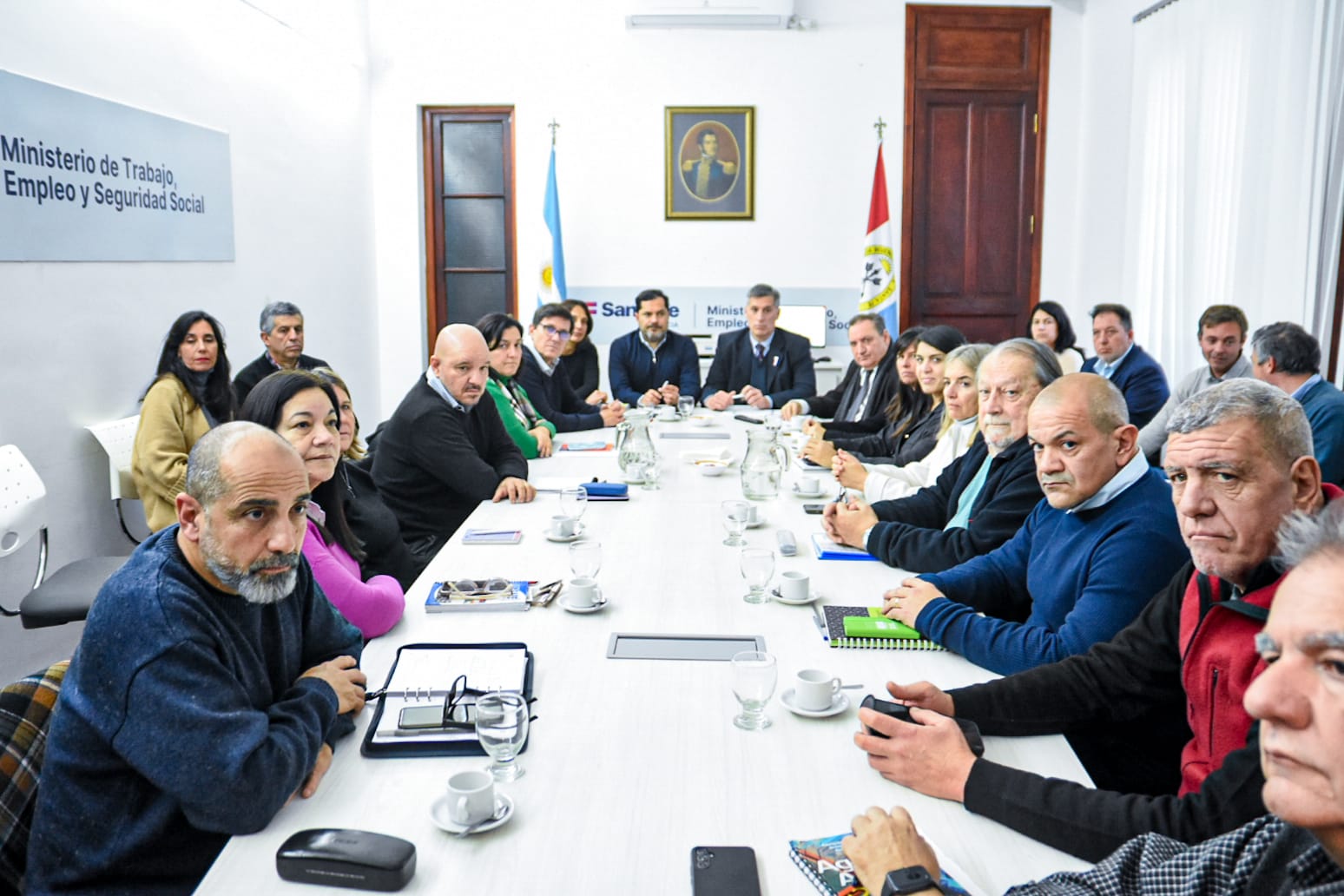 Por la mañana, en Casa de Gobierno, los dirigentes de ATE y UPCN se reunieron con los ministros de Gobierno, Fabián Bastia; de Economía, Pablo Olivares; y de Trabajo, Roald Báscolo. Tras el encuentro, Bastia aseguró que fue una “buena reunión donde se evaluó el semestre que fue muy bueno” y hubo un “informe económico importante y contundente con la evolución de las distintas variables económicas a nivel macro y el impacto en la micro que son valiosas para afrontar la nueva negociación, en un marco de mayor previsibilidad por la baja considerable y la tendencia a la baja de la inflación”.