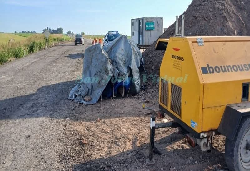 Allí , aparentemente el conductor de un Peugeot 208 no advirtió la señalización e impactó contra la valla de inicio de la obra. Luego, el auto continuó por la cinta asfáltica, rozó una retroexcavadora estacionada y terminó del otro lado de la canalización que se está ejecutando.