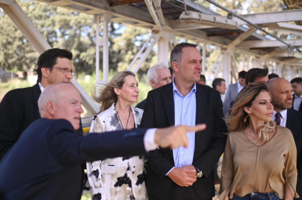 Estuvieron en la planta de Dreyfus. Los acompañaron Menem, Diez y funcionarios de Pullaro.