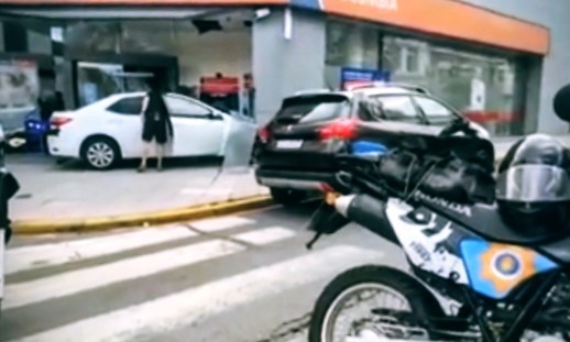 De acuerdo a las primeras informaciones, para evitar chocar con otro vehículo en dicha intersección, el auto se subió a la vereda e impactó contra el frente del banco. El impacto provocó la rotura de los vidrios del frente y la caída de parte del techo del sector de cajeros automáticos.